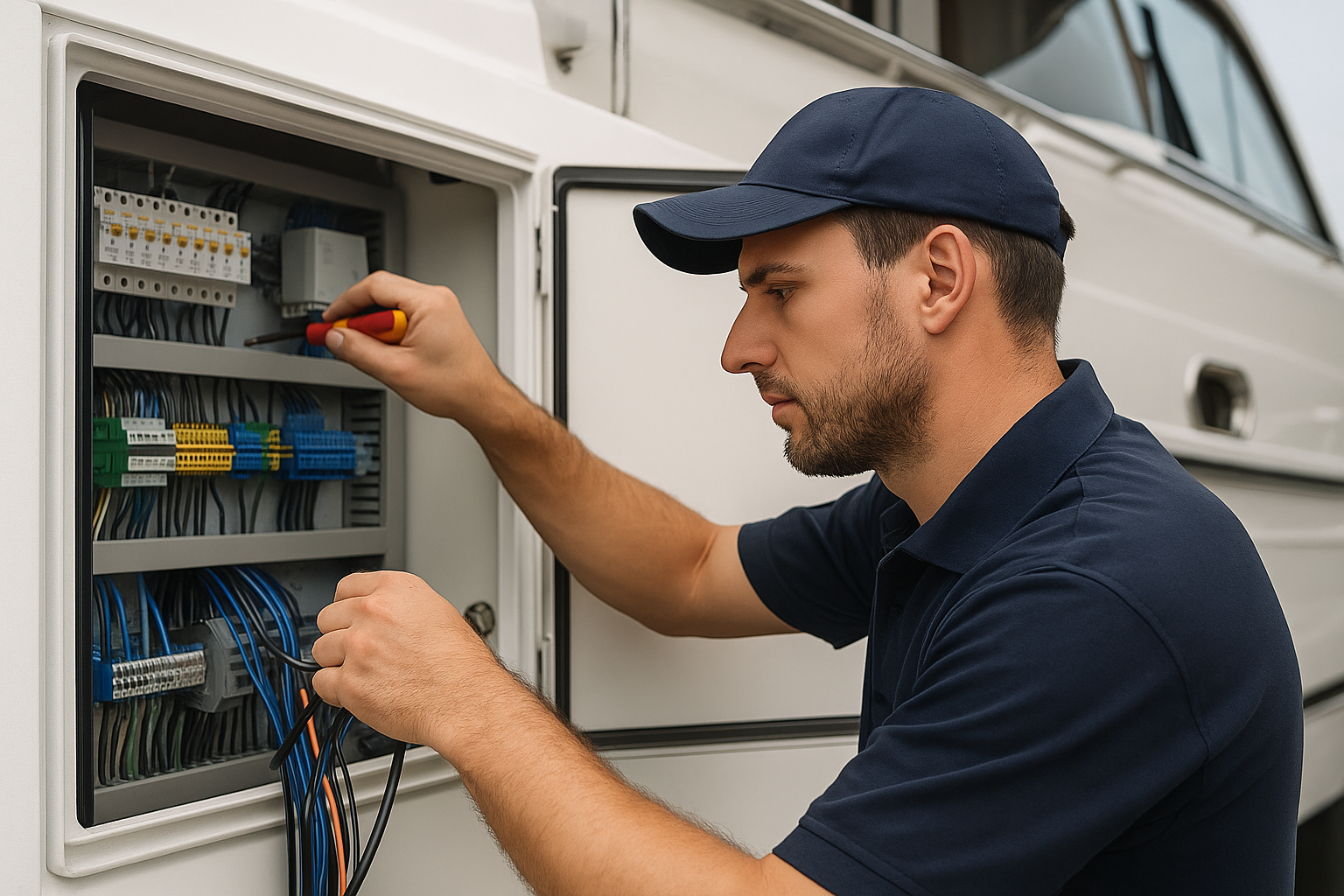 Motor yat ve teknelerinizin elektrik sistemleri, güvenlik ve konforun temelini oluşturur. Uzman ekibimiz, pano imalatından kablolamaya, otomasyon sistemlerinden bakım & onarıma kadar uçtan uca çözümler sunar. Denizde kesintisiz enerji ve güvenilir otomasyon için yanınızdayız.